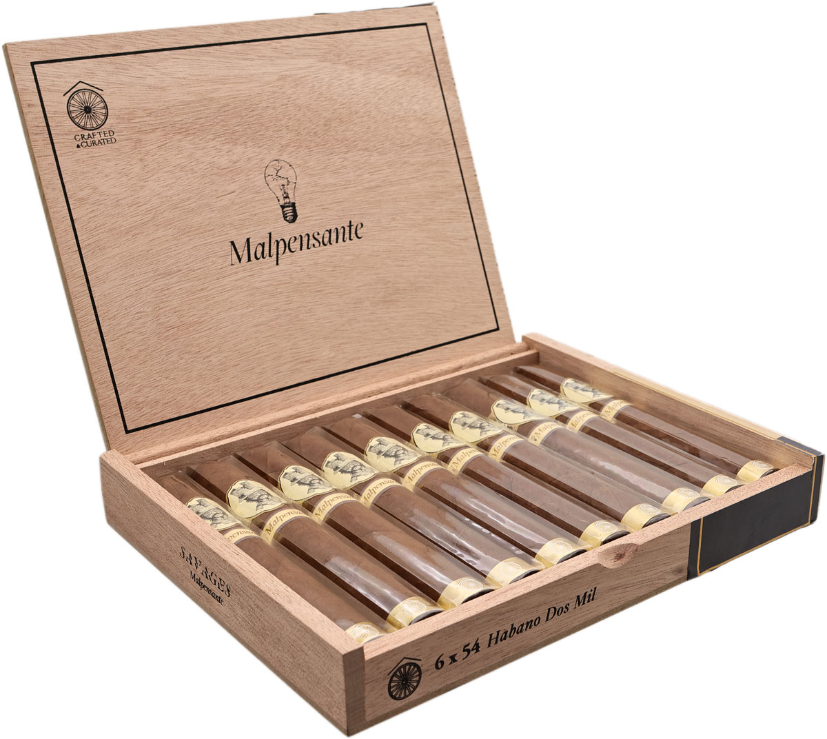 Caldwell's Crafted & Curated Malpensante — loosely translated to "The Cynic" — offers a refined take on the original Savages blend, combining a rich Habano 2000 wrapper with a Sumatran binder and premium Dominican fillers. Presented in a 6" x 54 Toro, this small-batch release delivers a complex smoking experience. Limited to 400 boxes of 10, Crafted & Curated Malpensante is a limited release that offers notes of earth, pepper, coffee, and subtle sweetness.