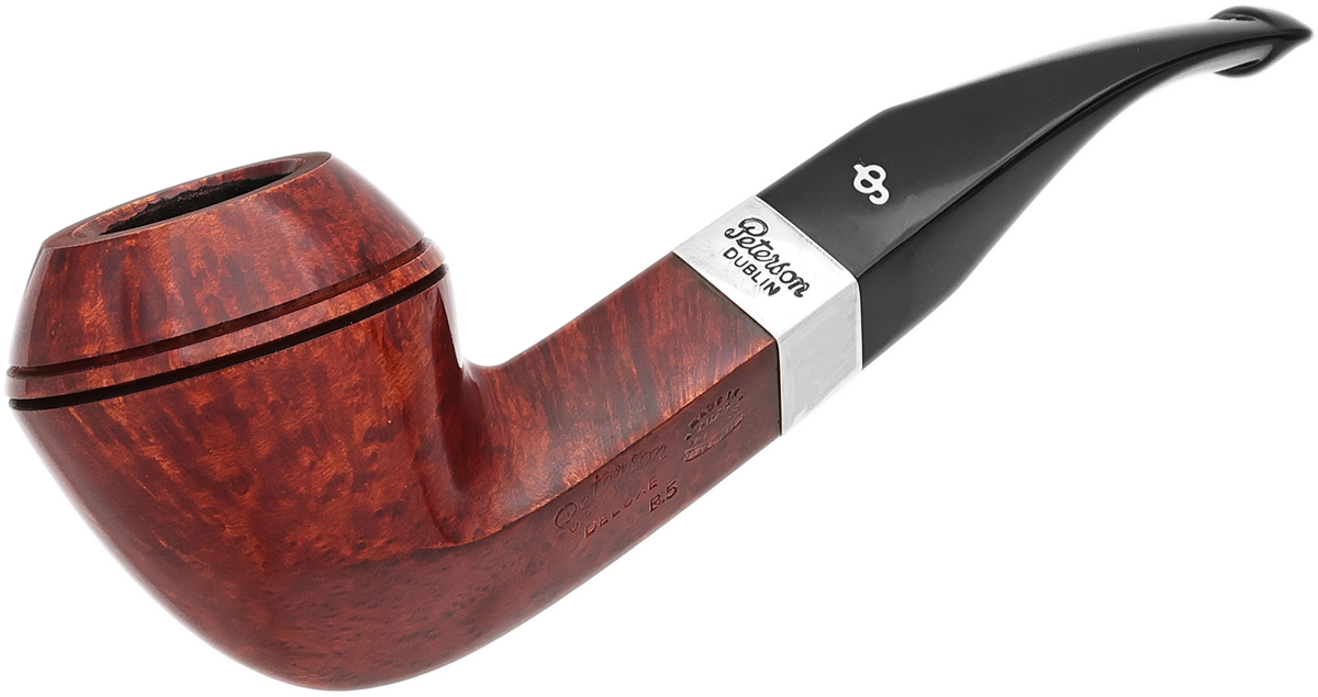 As the oldest continuously operating pipe factory in the world, Peterson often draws on its historic tradition to perfectly balance modern innovation with traditionalism, and the Deluxe Classic line embodies that approach, offering a series of pipes inspired by vintage aesthetics from historic Peterson catalogs. The Deluxe Classic range showcases extra-wide bands of sterling silver, and such a style is reminiscent of early-20th-century pipe design and indicative of Peterson's renowned metalwork, calling to mind patent-era Peterson pipes and creating a look that's classically Peterson in the same vein as many of their Pipe of the Year releases. Unlike those yearly editions, though, the Deluxe Classic series brings this retro motif to Peterson's regular-production lineup, limited only by the line's standards for briar quality. The luxurious silver accents combine beautifully with stummels selected specifically for their superior grain, with this example dressed in the smooth Terracotta finish — a rich, ruby-tinged stain that evokes the look of vintage pipes from the early 1900s. The Deluxe Classic series is one of Peterson's high-grade lines, composed entirely of non-System shapes but with many still featuring the patented P-Lip mouthpiece, lauded for distributing smoke evenly across the palate.