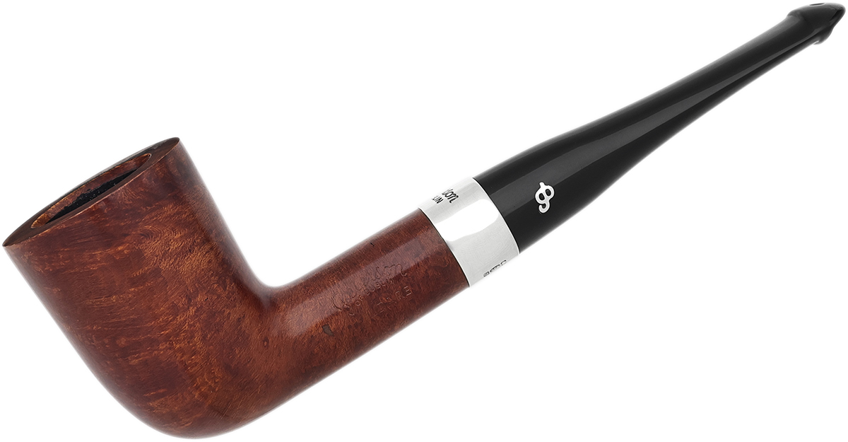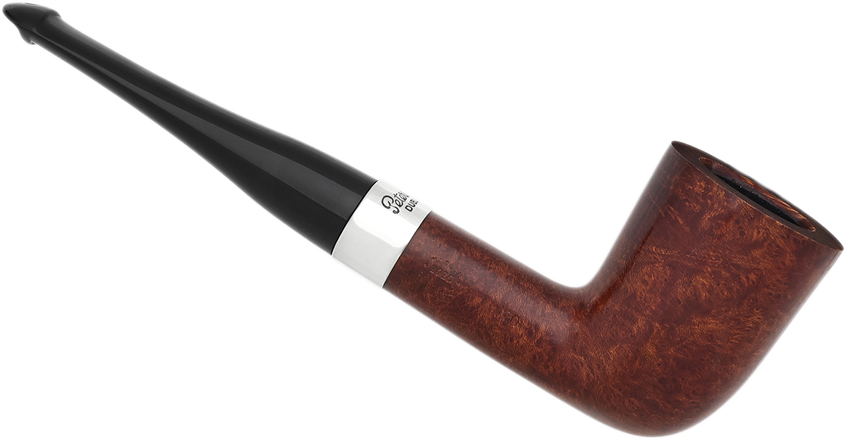 Peterson's Kildare line boasts a traditional color palette, with each pipe in the series marked by a chocolatey walnut stain and a jet-black mouthpiece. Additionally, each Kildare pipe showcases Peterson's esteemed silverwork, as evidenced by this attractive 120 Dublin.