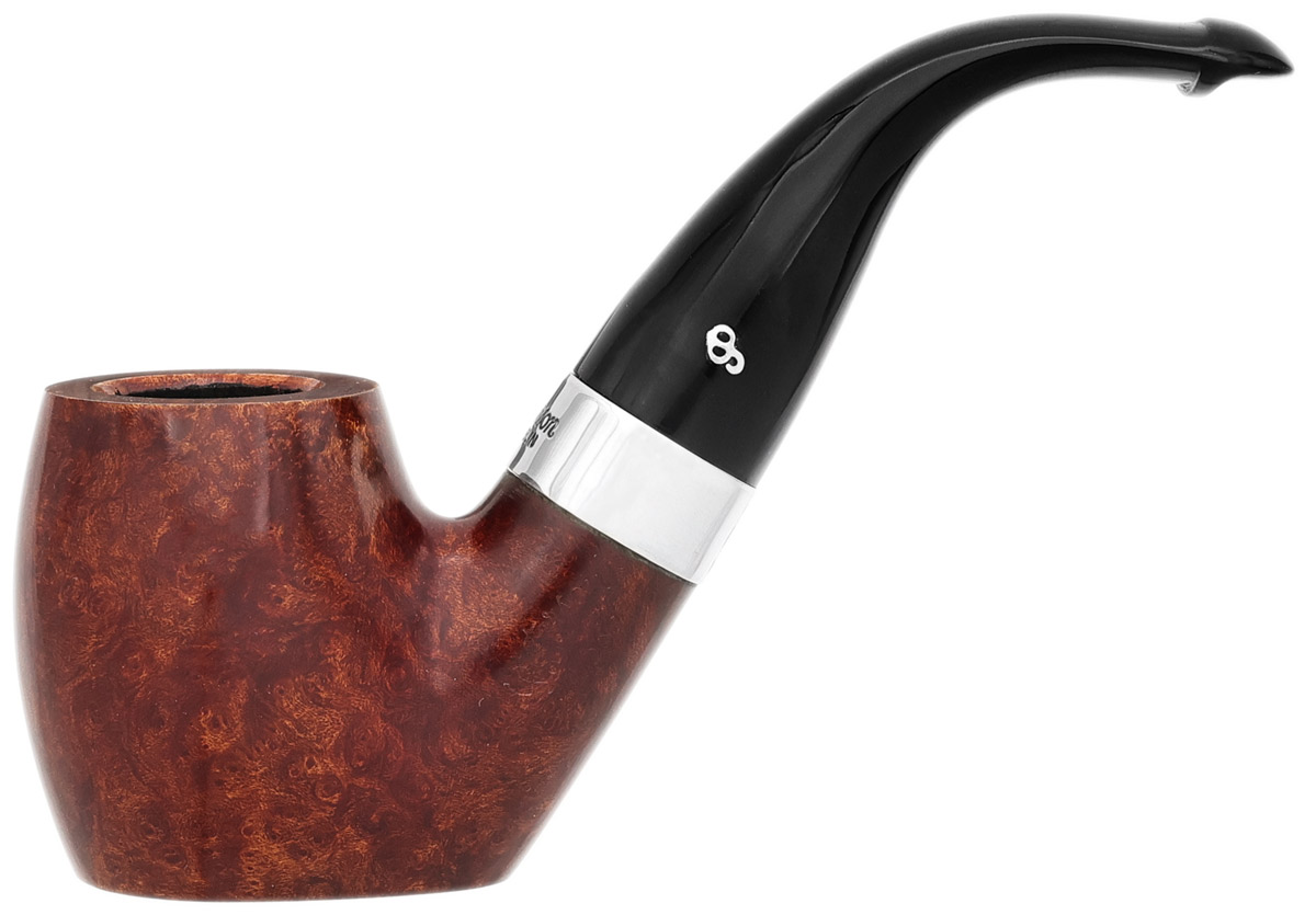 Peterson's Kildare line boasts a traditional color palette, with each pipe in the series marked by a chocolatey walnut stain and a jet-black mouthpiece. Additionally, each Kildare pipe showcases Peterson's esteemed silverwork, as evidenced by this attractive 306 Oom Paul.