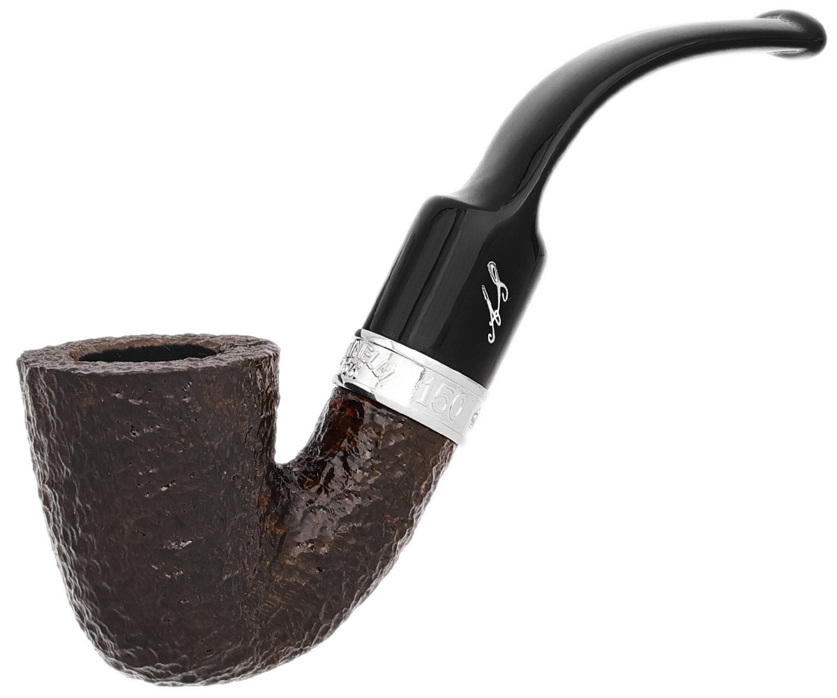 Marking Savinelli's 150th anniversary, this commemorative series honors the five generations of family leadership that have shaped the marque's enduring legacy. The collection comprises five distinct, limited-edition shapes, each named for a head of the Savinelli family — Achille I, Achille II, Achille III, Carlo, and Giancarlo. The Achille I is presented here in a sandblasted finish and accented with a bright metallic band.