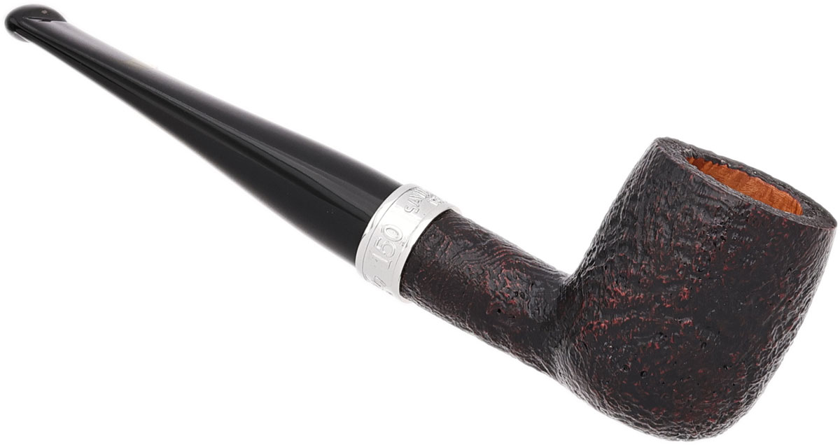 Marking Savinelli's 150th anniversary, this commemorative series honors the five generations of family leadership that have shaped the marque's enduring legacy. The collection comprises five distinct, limited-edition shapes, each named for a head of the Savinelli family — Achille I, Achille II, Achille III, Carlo, and Giancarlo. The Achille II is presented here in a sandblasted finish and accented with a bright metallic band.
