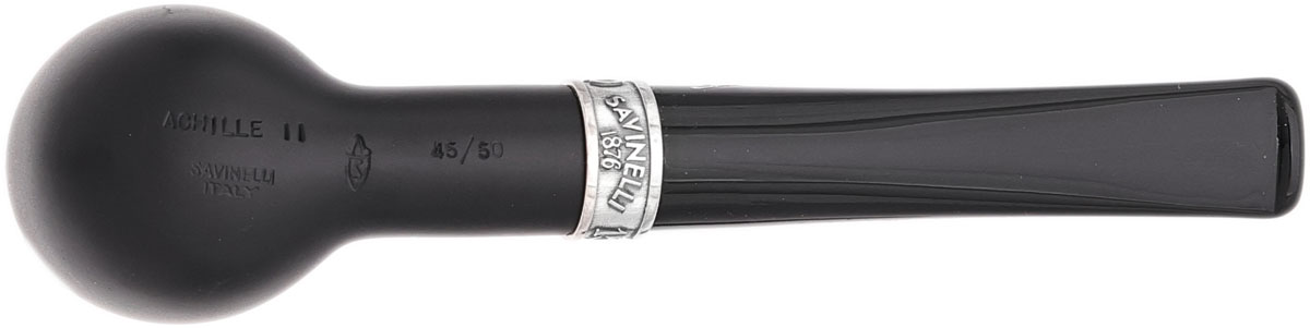 Marking Savinelli's 150th anniversary, this commemorative series honors the five generations of family leadership that have shaped the marque's enduring legacy. The collection comprises five distinct, limited-edition shapes, each named for a head of the Savinelli family — Achille I, Achille II, Achille III, Carlo, and Giancarlo. The Achille II is presented here in a smooth black finish and accented with sterling silver.