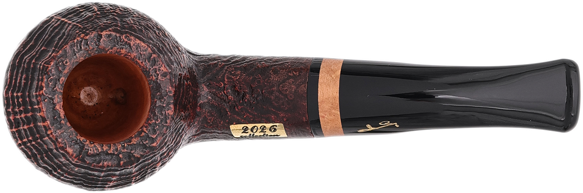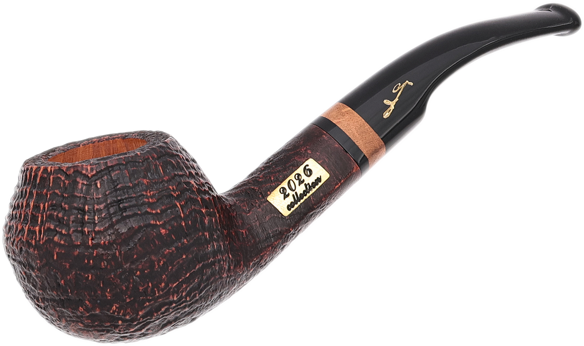 Since 1985, Savinelli has unveiled a new Collection pipe each year, introducing a distinctive, series-exclusive shape that highlights the brand's celebrated craftsmanship. The 2026 release takes the form of a curved Rhodesian, defined by a ridgeline-wrapped bowl, a smoothly flowing shank-and-stem arrangement, and a brass plate inlaid into the shank bearing the year. This example is presented in the line's sandblasted finish.