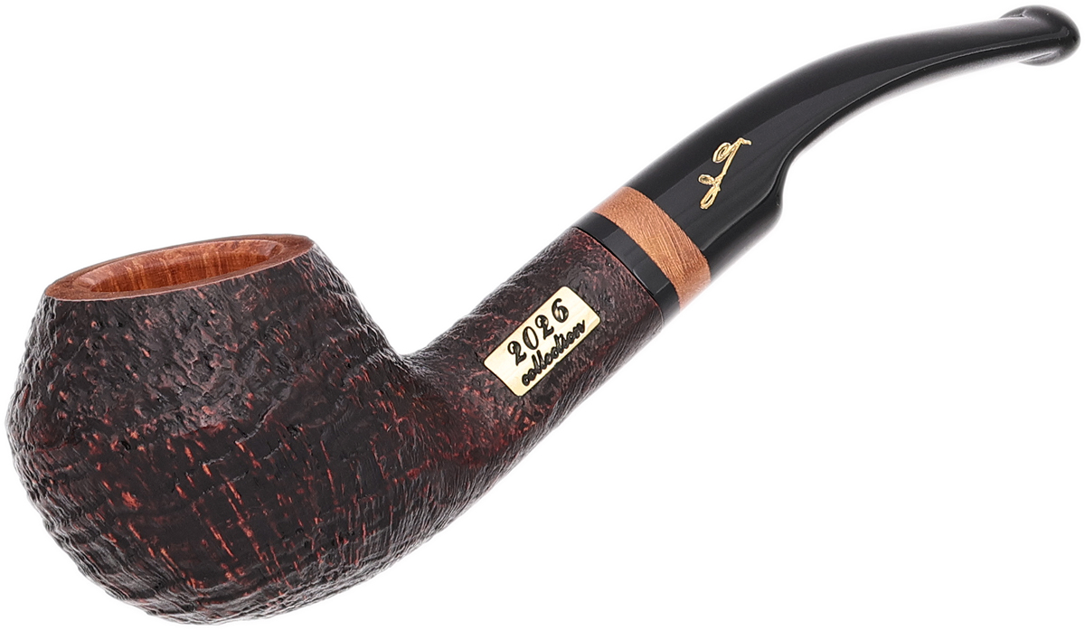 Since 1985, Savinelli has unveiled a new Collection pipe each year, introducing a distinctive, series-exclusive shape that highlights the brand's celebrated craftsmanship. The 2026 release takes the form of a curved Rhodesian, defined by a ridgeline-wrapped bowl, a smoothly flowing shank-and-stem arrangement, and a brass plate inlaid into the shank bearing the year. This example is presented in the line's sandblasted finish and features a smooth rim.