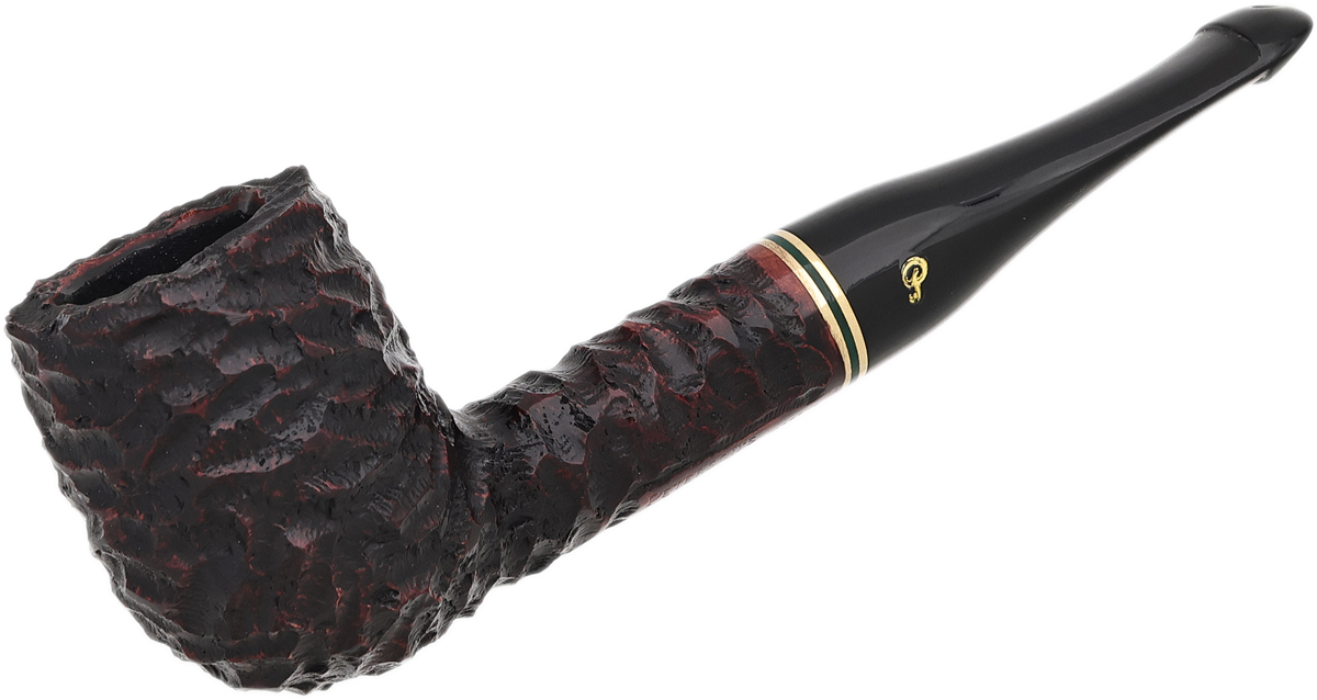 The Emerald Rusticated was among Peterson's most iconic series for decades, characterized by its craggy rusticated finish and smart emerald-colored acrylic accents evocative of Ireland's verdant landscape. Reintroduced in 2022, this best-selling series continues the line's legacy by presenting Peterson's most popular Classic shapes with traditional P-Lip mouthpieces and the workshop's iconic rustication — complete with the line's signature green accents. Available here in the classic 107 Billiard shape, featuring a sturdy bowl and a generous bend.