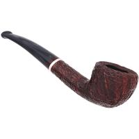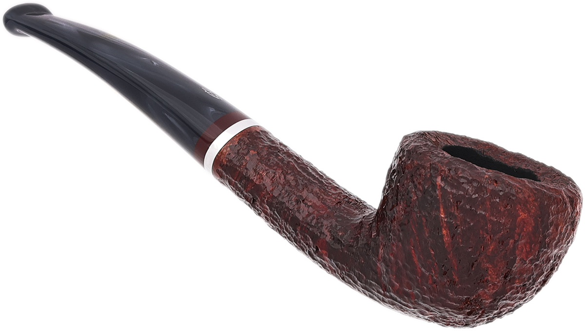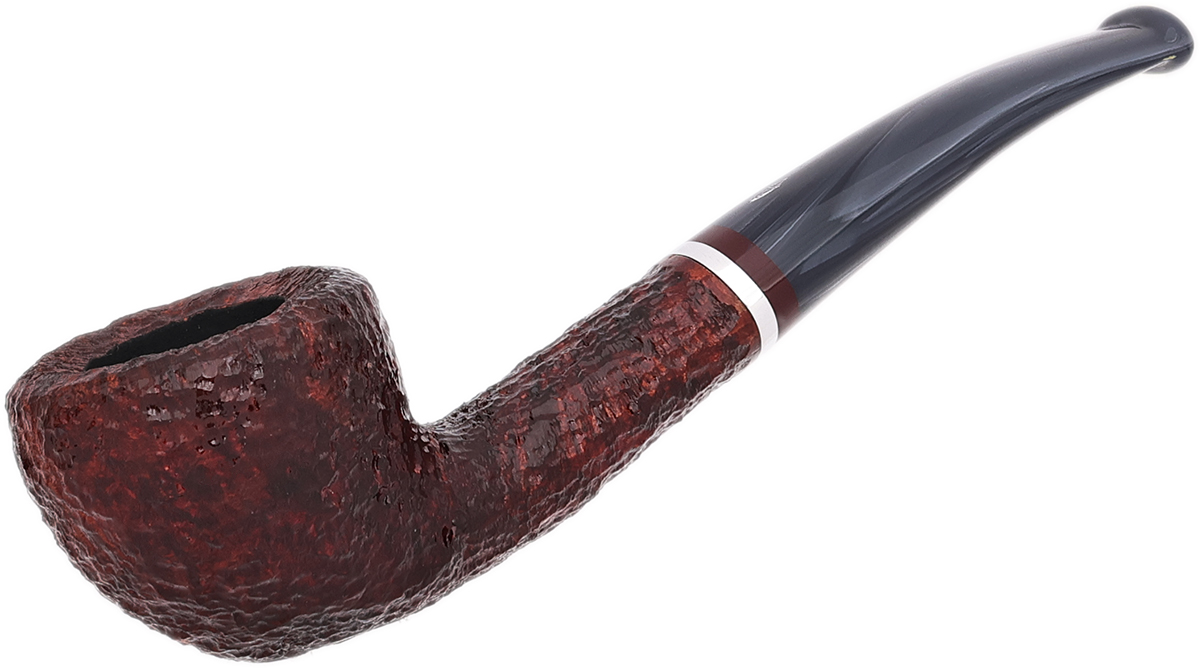 The Lunaria series is offered in two Bordeaux-hued finishes — smooth and rusticated. Each pipe is fitted with a swirled gray methacrylate stem and accented by an aluminum band. The line comprises five shapes, with the rusticated 316 KS presented here.