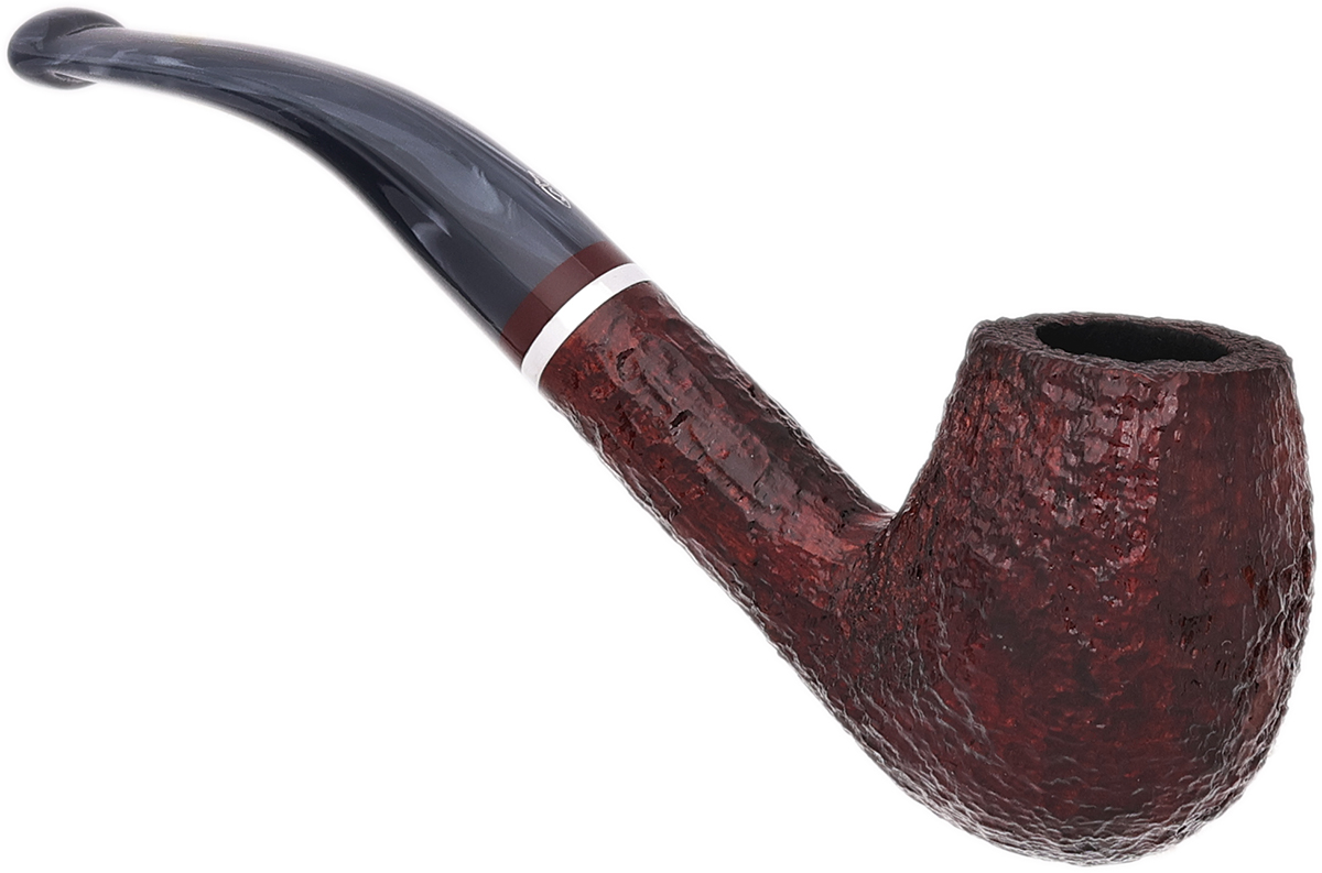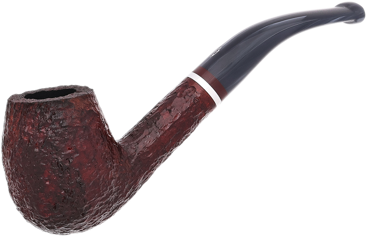 The Lunaria series is offered in two Bordeaux-hued finishes — smooth and rusticated. Each pipe is fitted with a swirled gray methacrylate stem and accented by an aluminum band. The line comprises five shapes, with the rusticated 670 KS presented here.