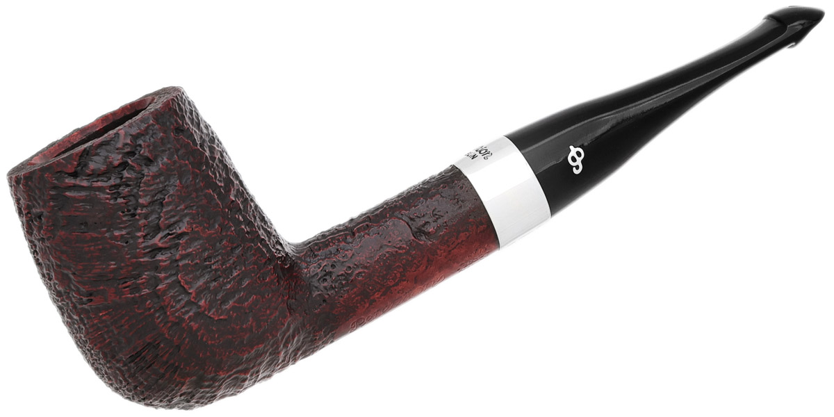 In a delightfully sandblasted finish with a bright, sterling silver accent, and a concise texture achieved by Peterson's artisan-style sandblasting setup, this Billiard boasts a tall bowl and sturdy, arrow-straight shank-and-stem arrangement. Especially appropriate for those occasions when you know what tobacco you want, and that you want a lot of it.