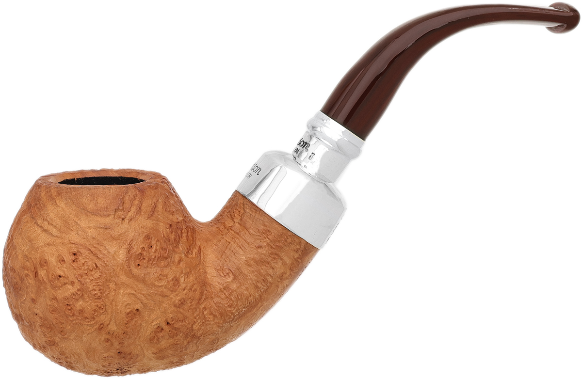 Peterson's Barley Spigot line celebrates the natural texture and warm tones of virgin briar, showcasing its organic grain in crisp relief with a subtle natural stain. The stummels in this limited series are hand-selected at the factory for their consistency and lack of natural imperfections, essential qualities for the tanblasted finish. Further enhanced by sterling silver spigot mounts and Cumberland-patterned acrylic mouthpieces, these striking pipes are produced in very limited numbers. This unique finish is available here in the XL02 Bent Apple shape.